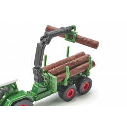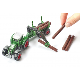 Combinación forestal extremadamente potente a pequeña escala a un precio asequible. El nuevo remolque forestal de eje tándem con grúa de carga es arrastrado por un enorme tractor Fendt. La grúa de carga se puede girar y girar. Los troncos de los árboles se pueden cargar y descargar como en la realidad. Se incluyen troncos de árboles.